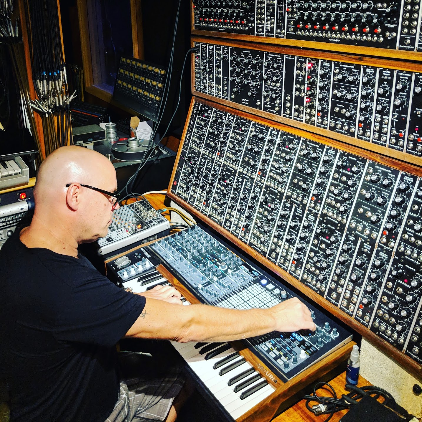 I’ve been scoring and producing various projects ranging from hip hop artists to media and television themes. Harmonic Labs located in Brentwood, TN, is owned by Rick Chapman who has been a long time friend of myself and my family. The studio is based around an Audient 8024 console along with a ton of class A outboard gear and a Pro Tools HDX system. The bonus with this room is the large modular synth rig and a number of amazing keyboards. I brought in my own rig and integrated it with the rest of the studio. What I ended up with is a dream for any producer. Great things to come. #musicforthemasses